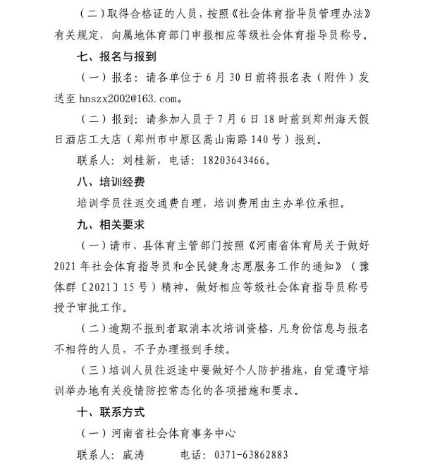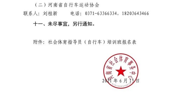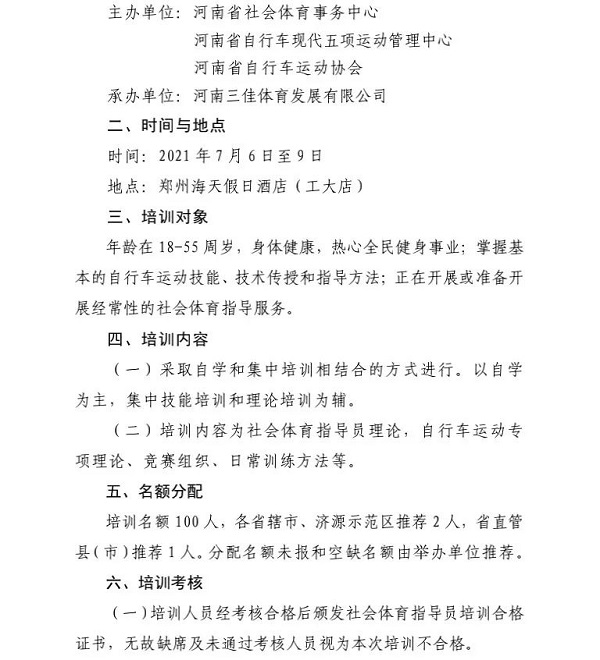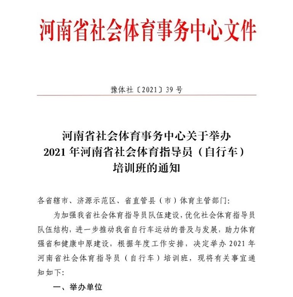 河南省社会体育事务中心举办2021年河南省社会体育指导员(自行车)培训班通知
