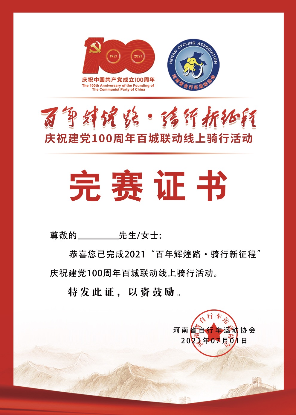 “百年辉煌路·骑行新征程”庆党100周年百城联动线上骑行活动